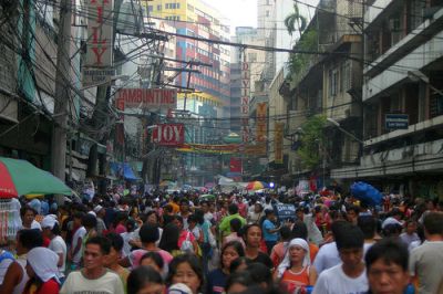 Mind you, I can understand his confusion. Taguig is a maze of ramshackle markets, makeshift eateries and tiny sari-sari stores, where men in string vests and baseball caps reach between rusting iron bars to make micro-purchases of Nescafe sachets and rough local cigarettes (sold singly, rarely by the packet). A welcome, cool breeze is doing its best to disperse the ever-present fog of pollution, and it seems like the entire city is outside, haggling for vegetables, chewing on chicken kebabs, playing tongits to win a few pesos, or somehow sleeping through the din of traffic and the warbling efforts of unselfconscious videoke singers. The shiny saloons of Bonifacio are gone, outmaneuvered by overloaded tricycle sidecars buzzing down the narrow lanes, causing scrawny dogs to leap for their lives.